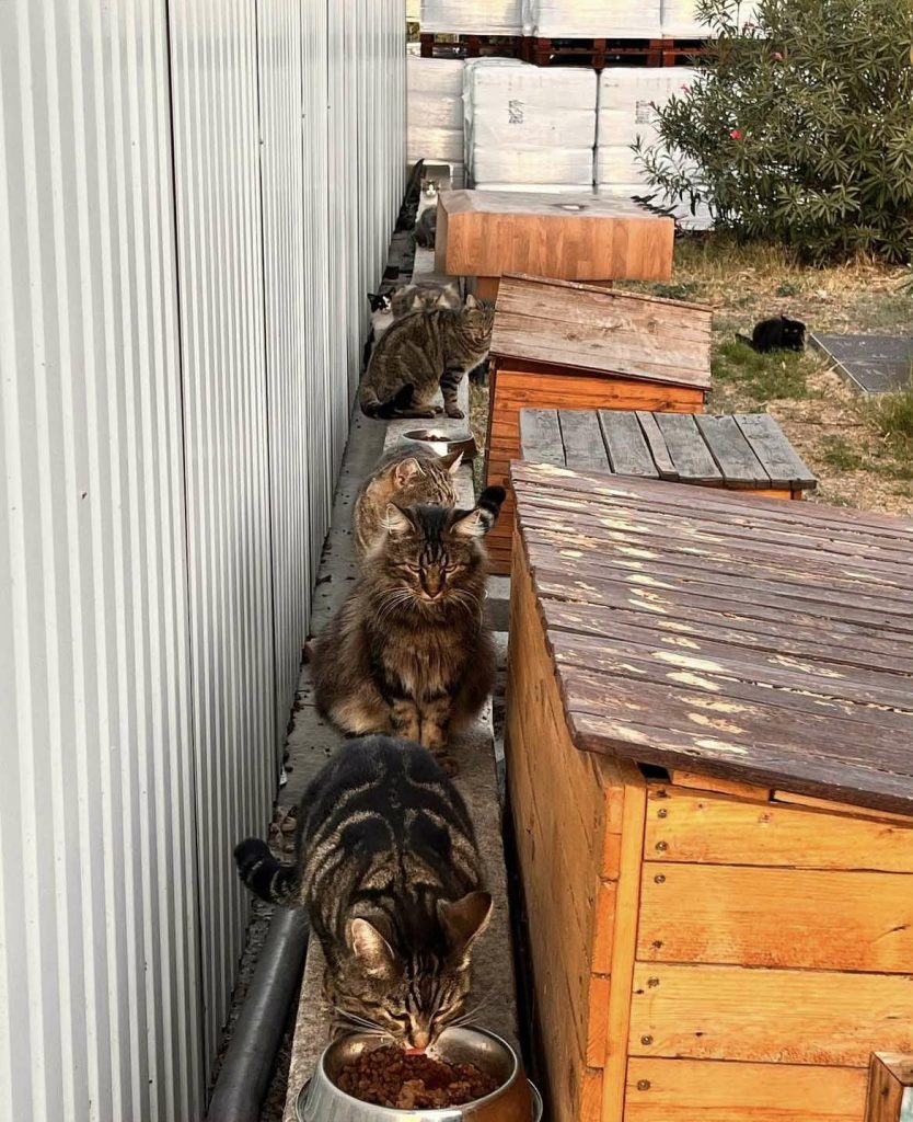 Nous créons également de véritables villages de chats : des espaces sécurisés où ils disposent d’abris, de nourriture quotidienne et d’un suivi attentif. Ces lieux deviennent pour eux de petits havres de paix.